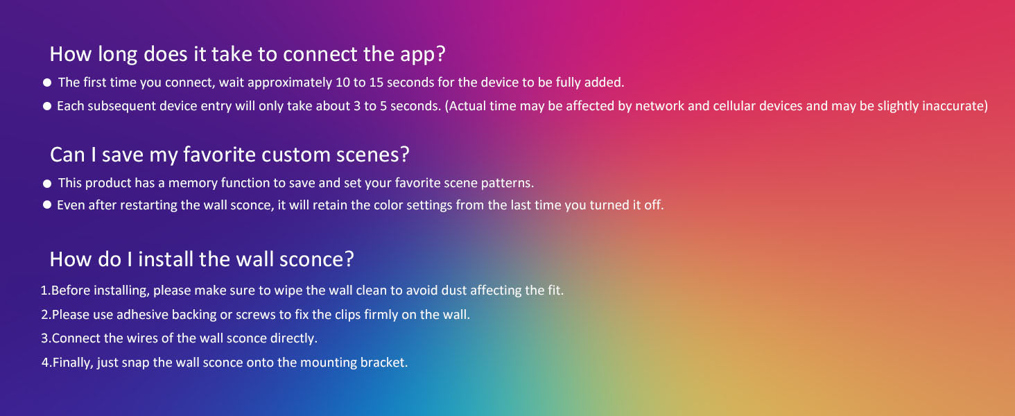 - 54 Scene Modes:Experience the magic of 54 scene modes that cater to every mood and setting,effortlessly switch between scenes to transform your space with a single tap.